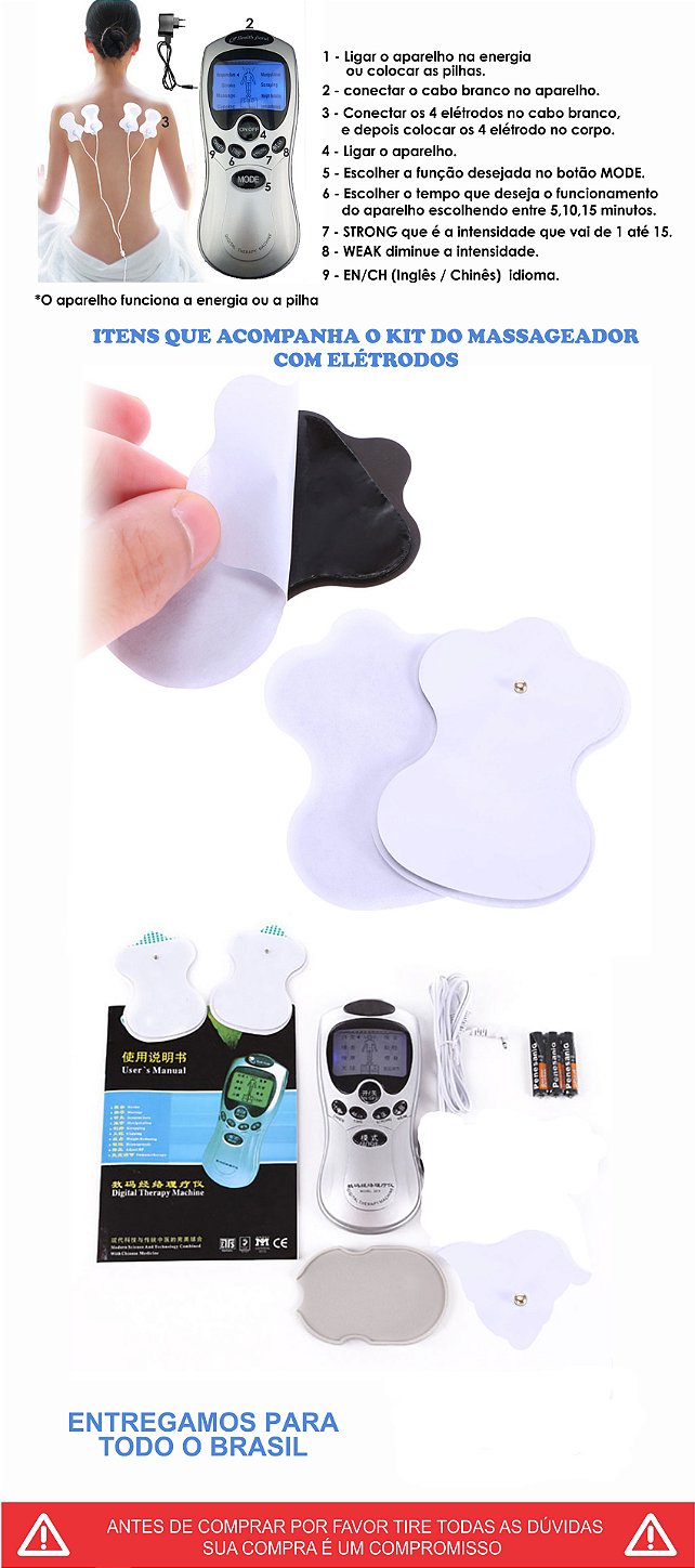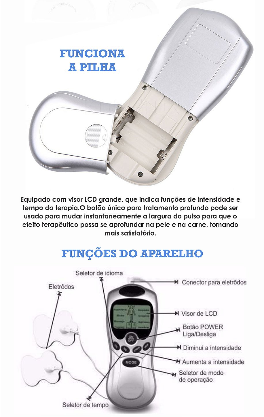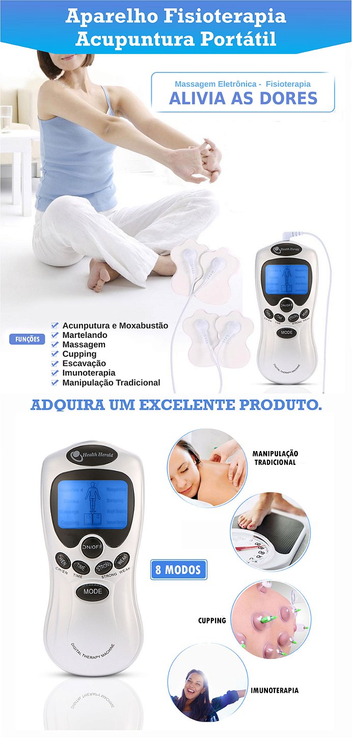 Inovador Aparelho Tens e Fes de Fisioterapia e Massagem Health Herald com 8 Funções !