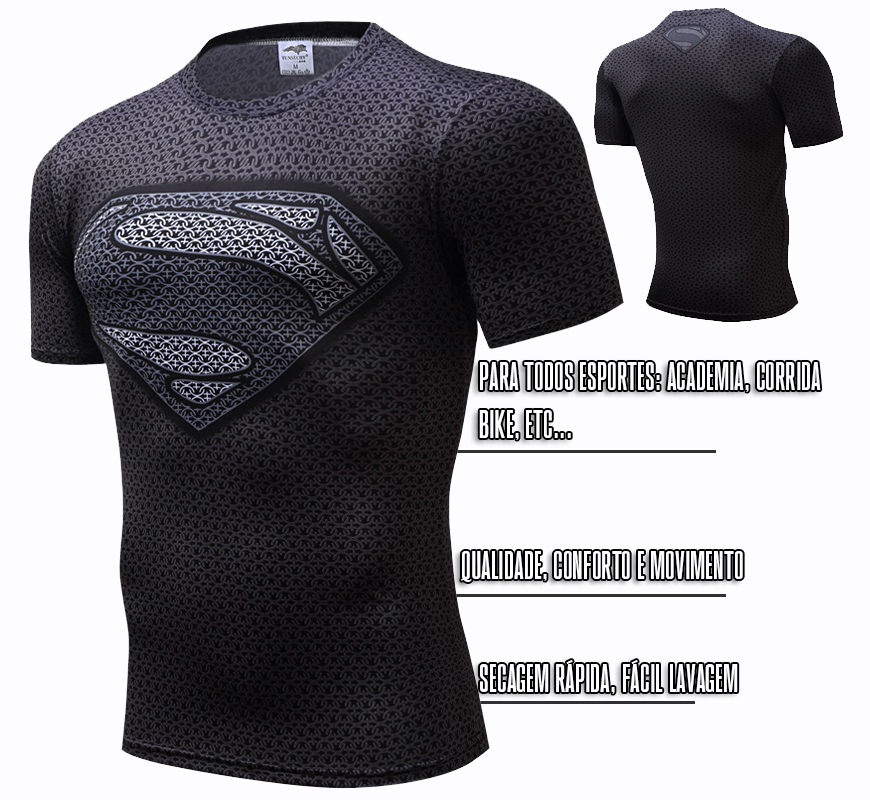 Camisa De Compressão Curta Superman Térmica Uv Fit Moto Luta