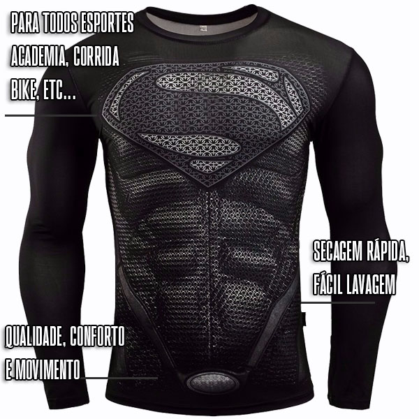 Camisa De Compressão Superman Estampada Térmica Uv Fit Moto Luta