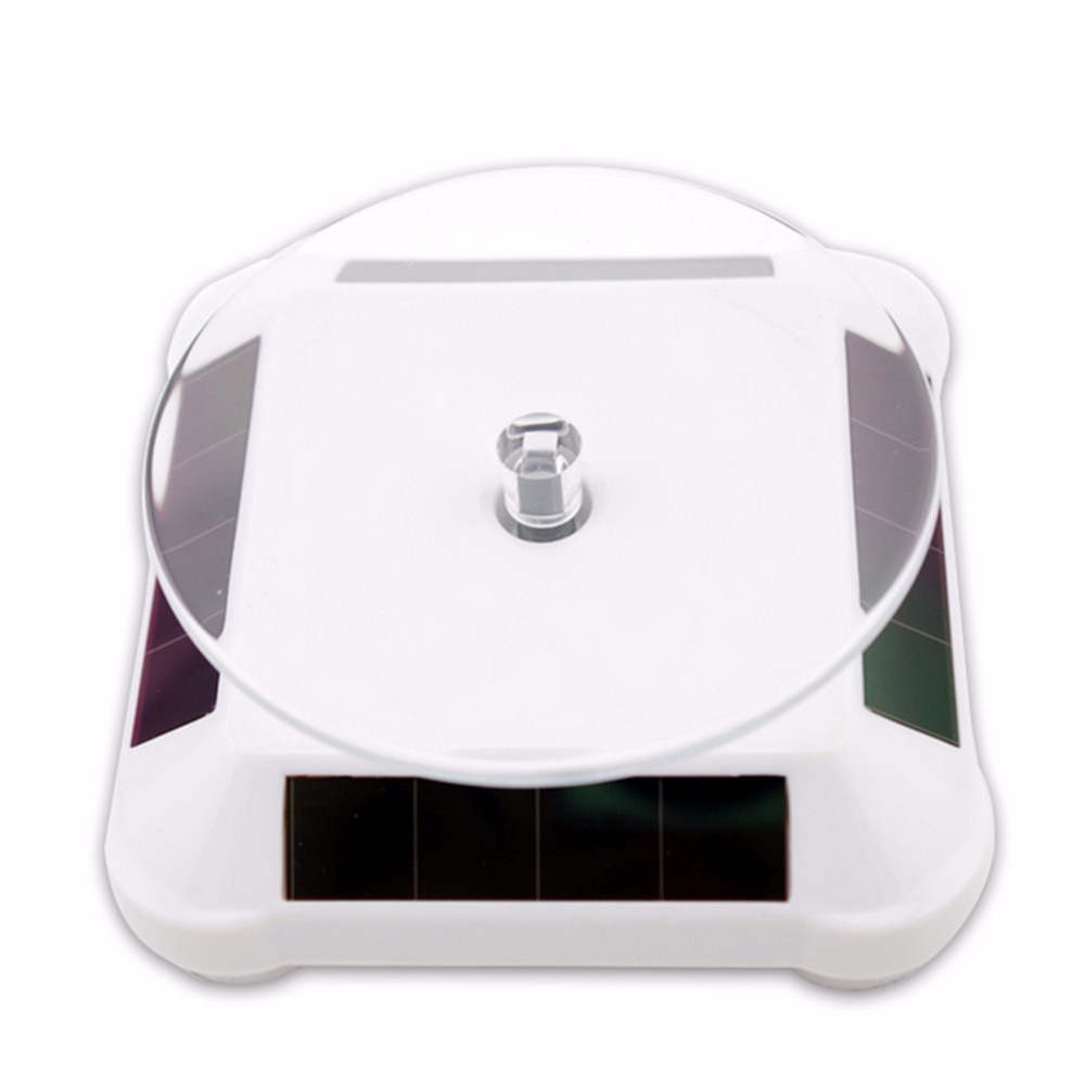 O Produto não usa pilhas comuns e sim energia solar, quanto mais intensa a cabine de luz velocidade de rotação é mais rápido e capacidade de carga é mais forte, vice-versa, mais lento e mais fraco, em 500LUX intensidade da luz sob o (igual a contadores de jóias em geral em shopping centers em a intensidade da luz) pode carregar mais de 300 gramas de produtos de exibição, se a luz é forte, negativo com peso superior a 500 gramas, amplamente utilizado em jóias, relógios, telefones celulares, câmeras digitais e outros produtos de exibição.